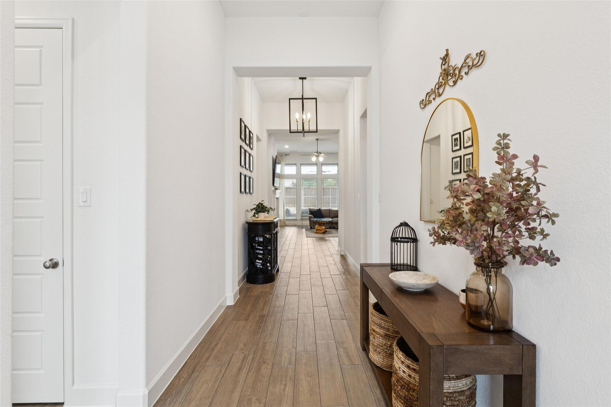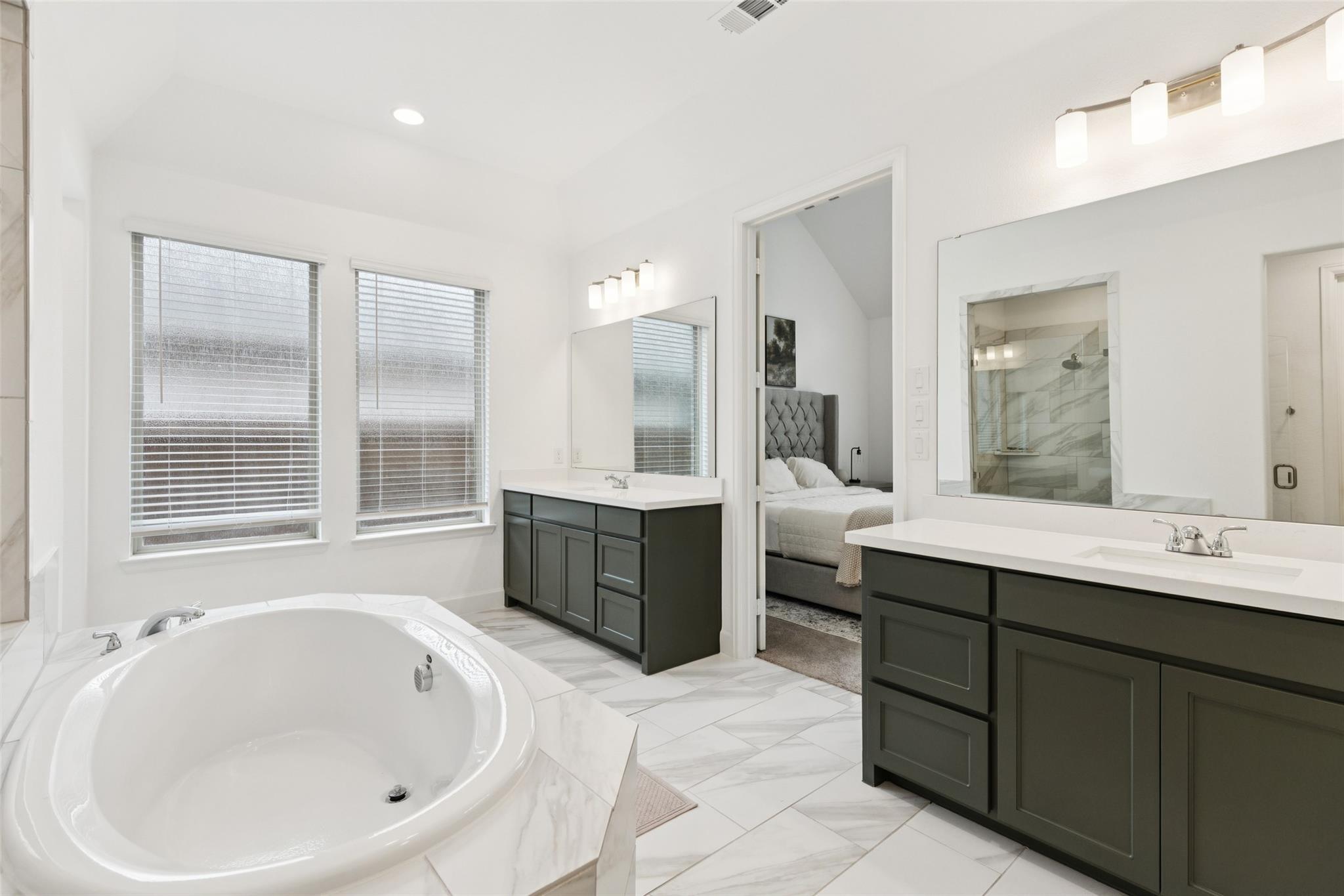 Welcome to this beautifully designed home featuring an elegant brick and stone elevation and a spacious 3-car tandem garage. Step inside to this single story open floor plan filled with natural light, tall ceilings, and warm, inviting finishes. The heart of the home is the gourmet kitchen with a large island, gas cooktop, breakfast bar, dining area, and generous pantry—perfect for everyday living and entertaining. The family room boasts a cozy fireplace and flows seamlessly to the covered back patio equipped with a TV hookup and gas hookup—ideal for outdoor lounging and grilling. Retreat to the master suite, complete with double vanities, a large soaking tub, separate walk-in shower, and two spacious walk-in closets. Secondary bedrooms are connected by a convenient Jack & Jill bath, providing privacy and functionality. The third guest bedroom also has a full size bath just outside the hallway. The backyard offers a large grassy area and a pebble play space, great for kids or pets. Enjoy access to wonderful community amenities including a resort-style pool, multiple playgrounds, and shaded picnic & grill areas—everything you need for relaxation and recreation just steps from home.