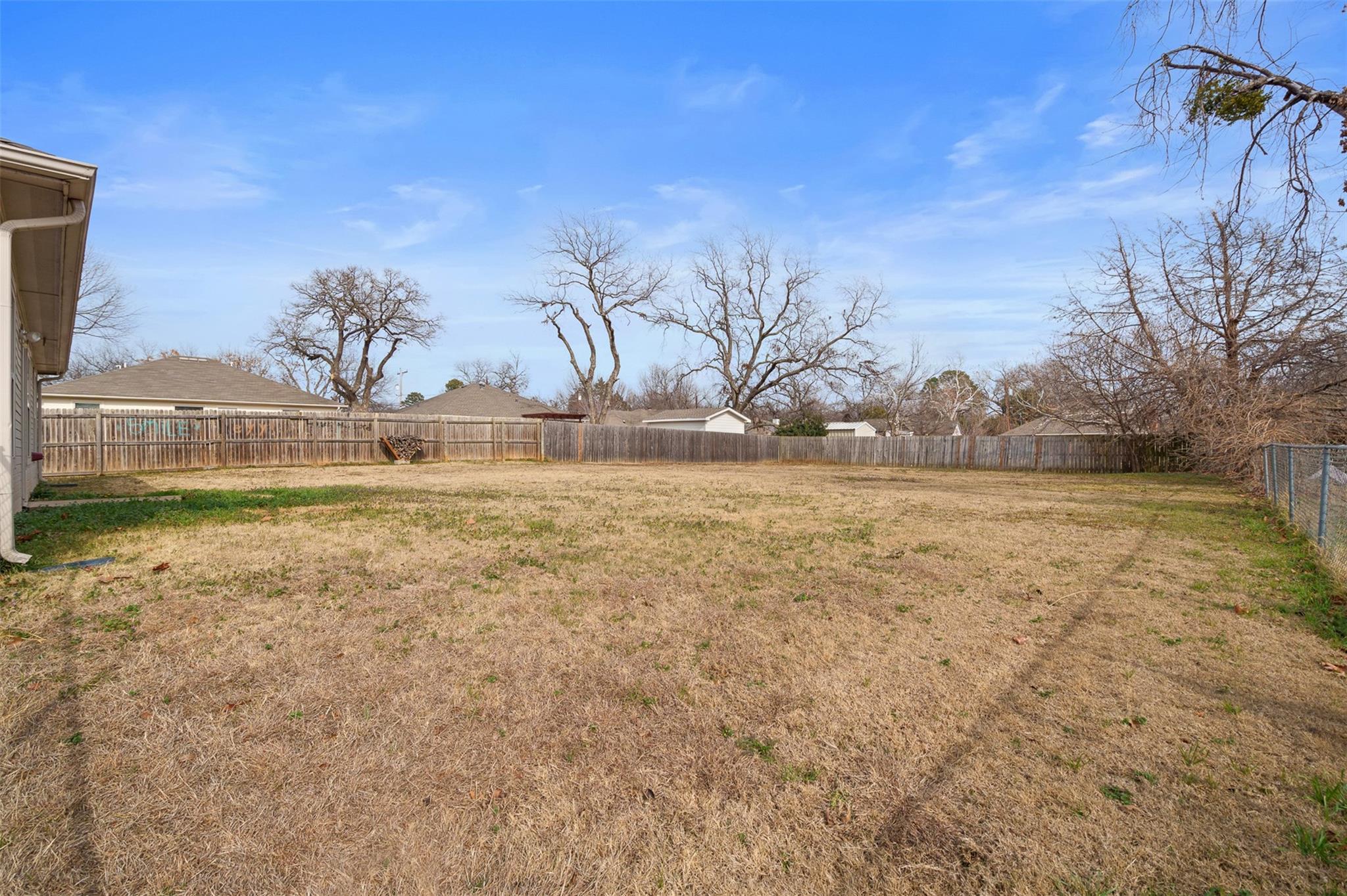 Welcome home to charm, comfort, and space in the heart of Aubrey! This beautifully maintained 3-bedroom, 2-bath home offers 1,408 square feet of thoughtfully designed living space and sits on an oversized lot with a huge backyard—perfect for entertaining, play, pets, or future outdoor projects. Step inside to discover stylish, low-maintenance wood-look tile flooring that flows seamlessly throughout the home, creating a modern and cohesive feel. The extra-large living and family room with an elegant tray ceiling provides the ideal space to relax or gather with friends and family. Recent updates include a brand-new roof in 2025, providing peace of mind. The home also features a separate laundry room, spacious pantry, and a welcoming dining area that makes everyday living easy and comfortable. Outside, the expansive .31-acre lot offers endless possibilities—from backyard barbecues to garden space or even a future pool. Conveniently located near schools and Downtown Aubrey, this home blends small-town charm with everyday convenience. This is a home you’ll fall in love with the moment you walk in—don’t miss your chance to make it yours!